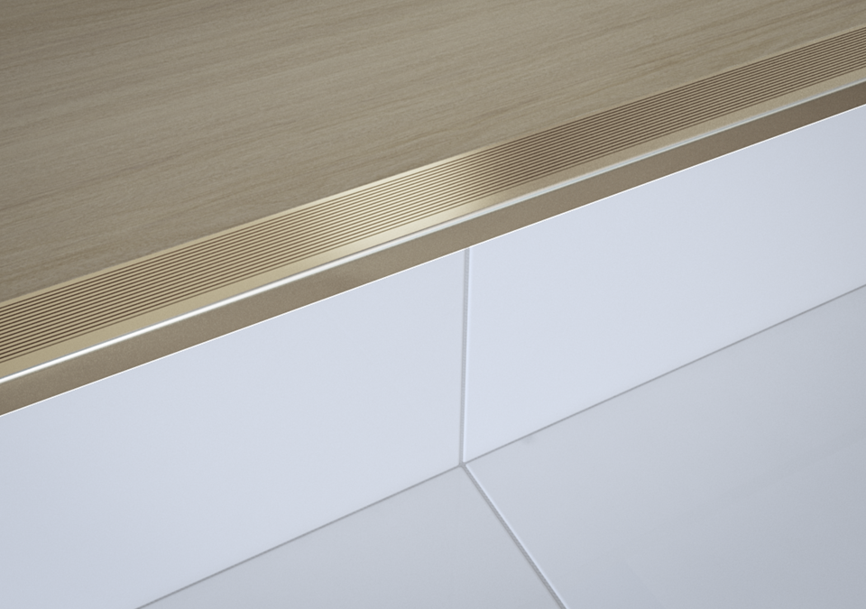 Contamos com diversas opções de acabamentos de pisos: acabamento para escadas, acabamento para desnível entre pisos, acabamentos de portas, acabamento para unir pisos da mesma altura, acabamento para piso e parede, junções.